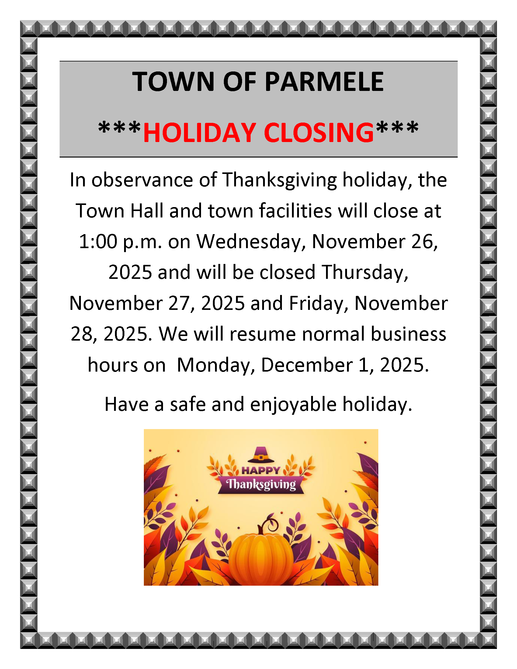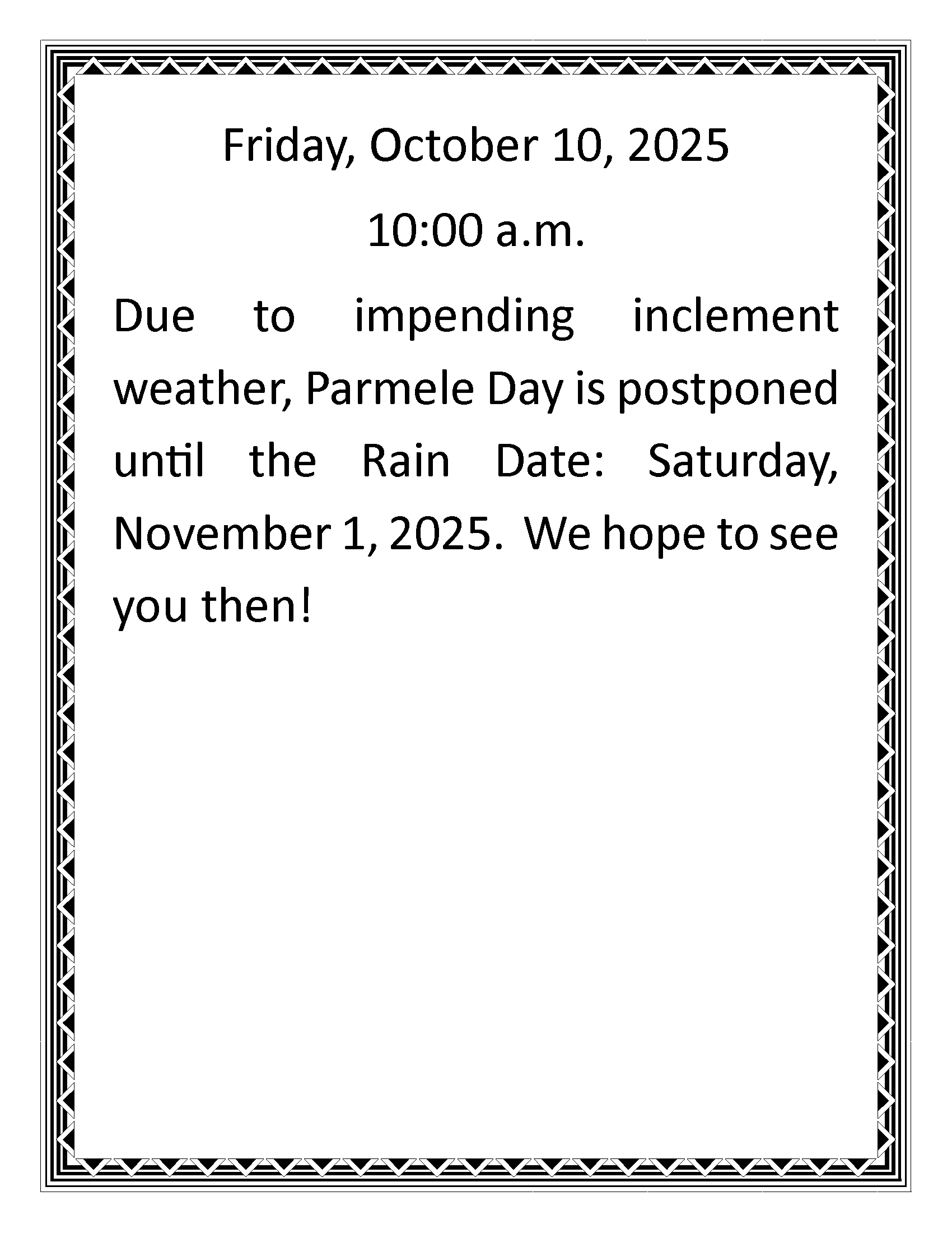 NOTE: Parmele Day 2025 – Saturday, October 11, 2025; office potentially closed Monday, October 13, 2025 (Columbus Day)