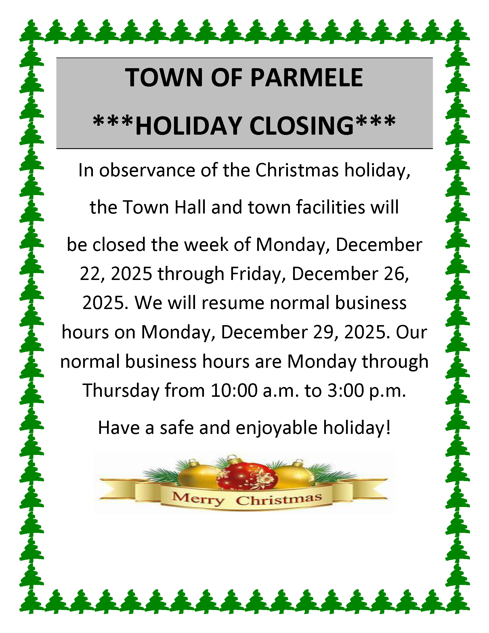 We welcome you to the Town of Parmele, located in western Martin County, North Carolina. Established in 1893, our motto is "The Small Town That Makes a Difference!" Home of the famous country music group "Parmalee", our quaint little town with a population of around 300 is a hidden gem with a rich history.