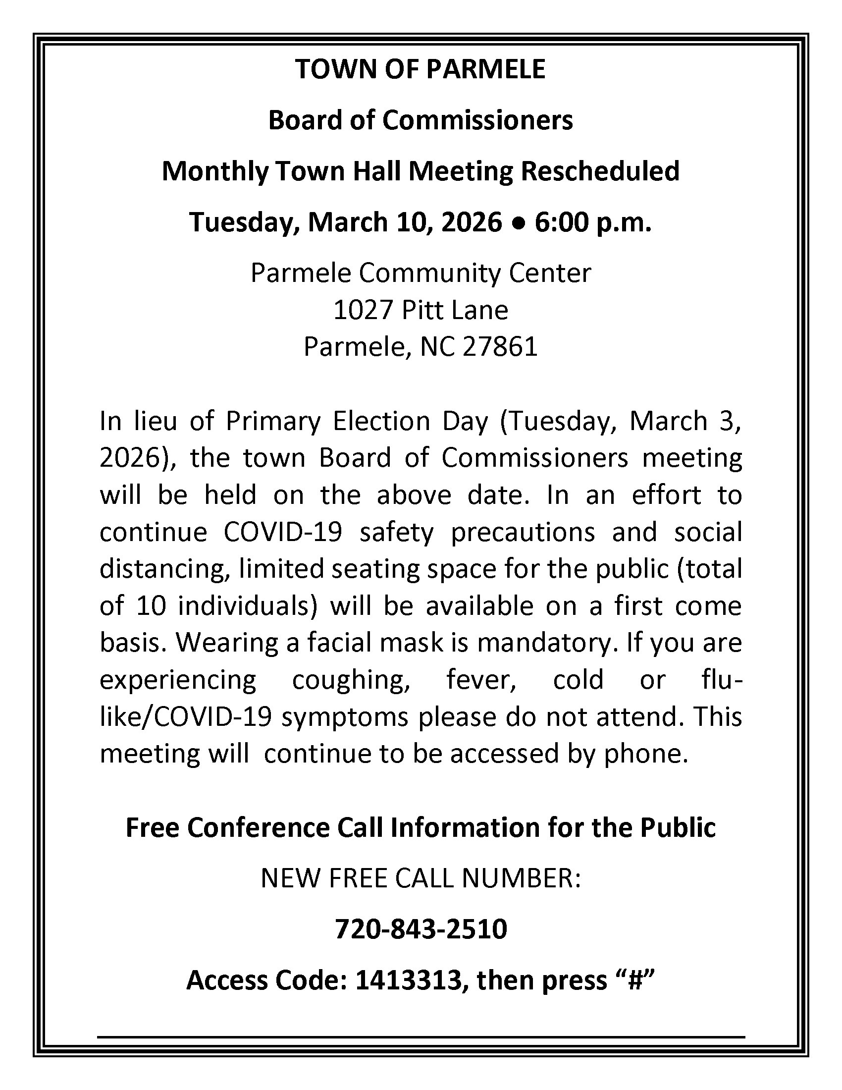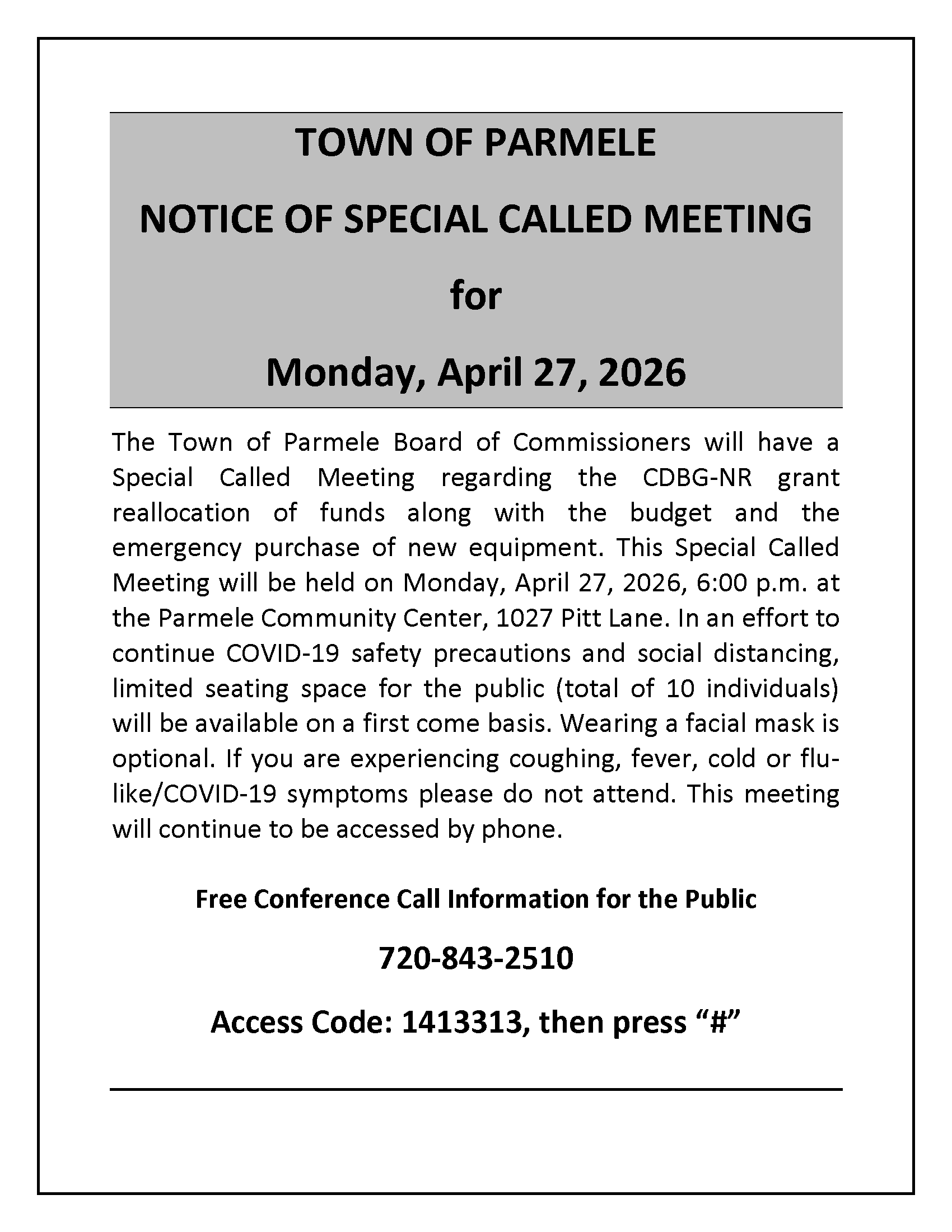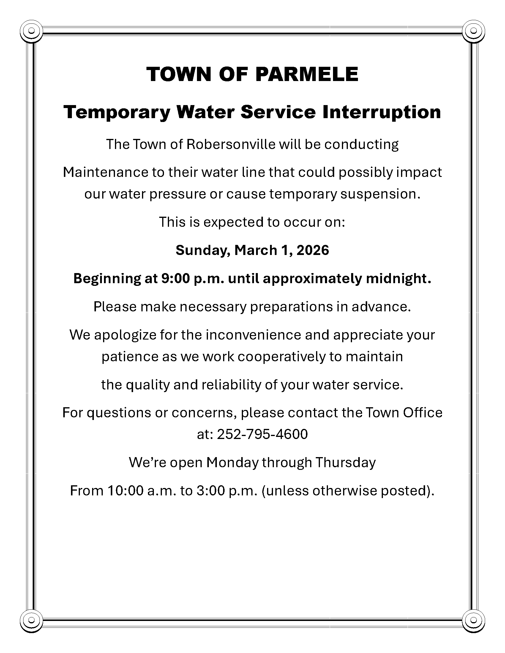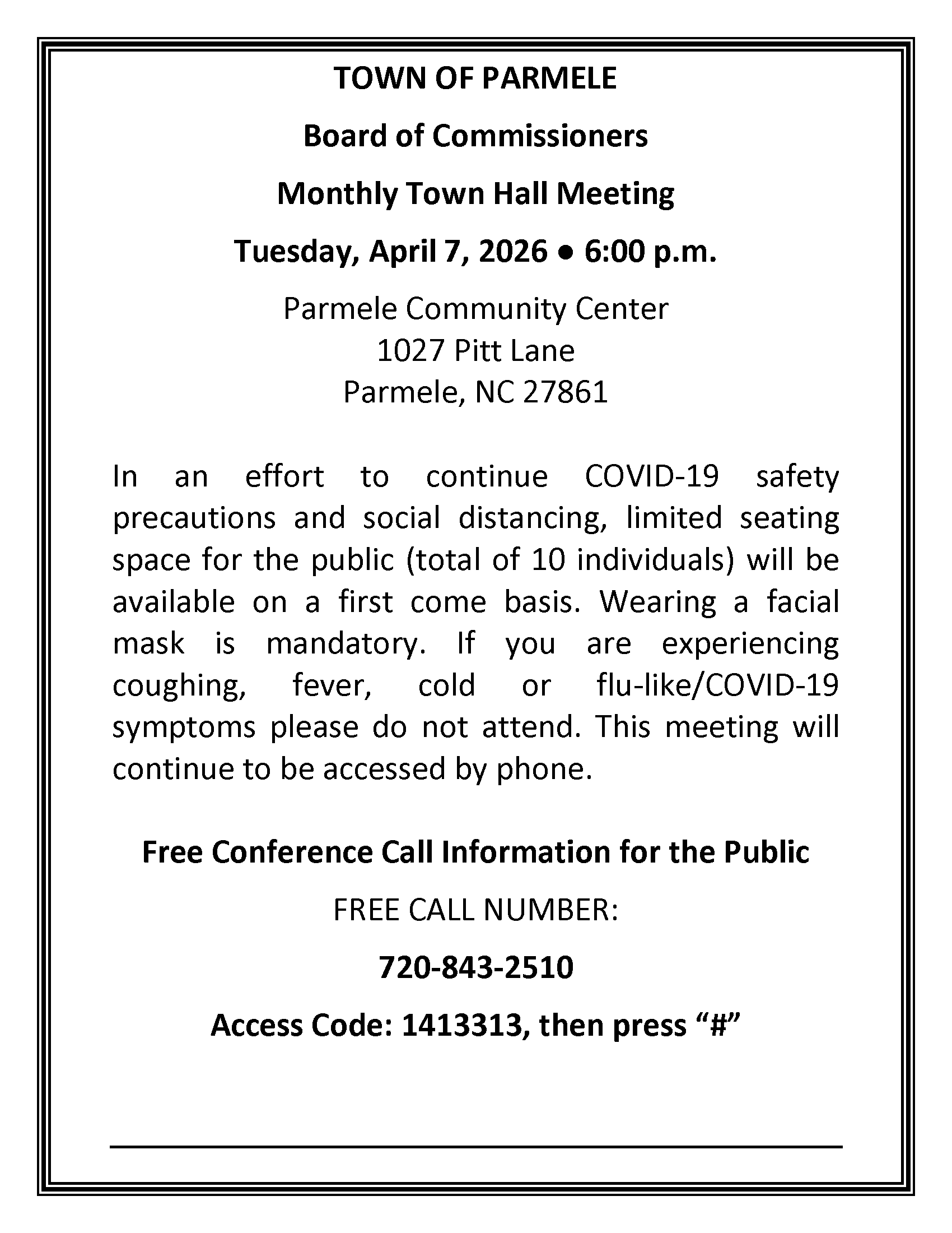 We welcome you to the Town of Parmele, located in western Martin County, North Carolina. Established in 1893, our motto is "The Small Town That Makes a Difference!" Home of the famous country music group "Parmalee", our quaint little town with a population of around 300 is a hidden gem with a rich history.
